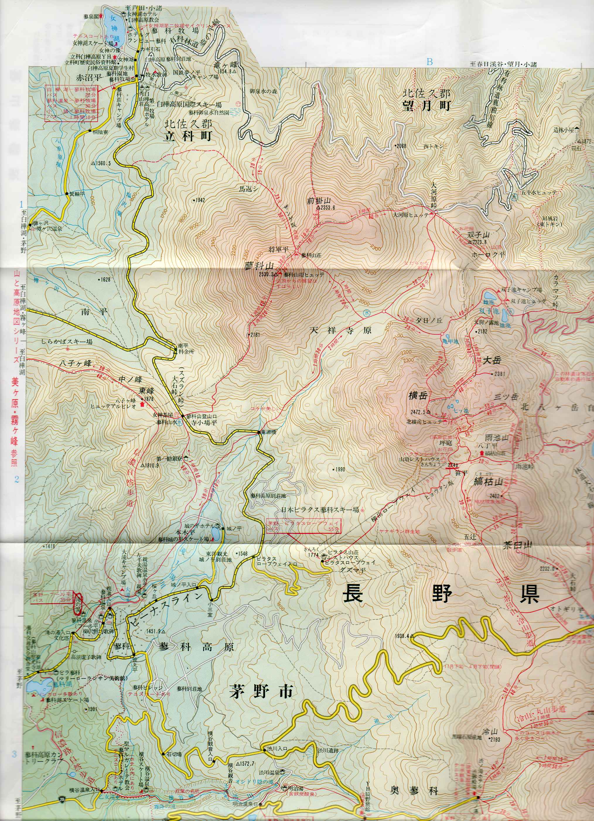 下山は途中のリフトを利用して女神湖の畔へ。ここのホテルの温泉で汗を流し、タクシーを呼んでもらって北八ヶ岳のロープウエイへ。