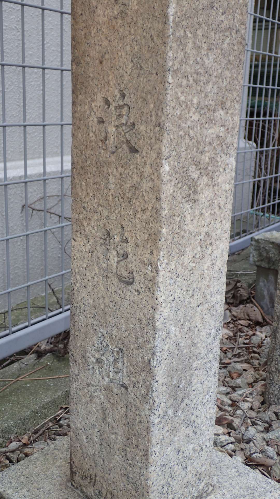 浅香駅東側の裏山には構想のマンションが建っているが、その隅に鳥居を発見。かつてはこのマンションの東側の野球グランド手前に設置されていたものが移築された。