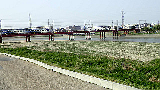 大和川に架かる阪和線の鉄橋。昭和40年頃までは、この下付近で子供たちが泳いだりして遊んでいた。