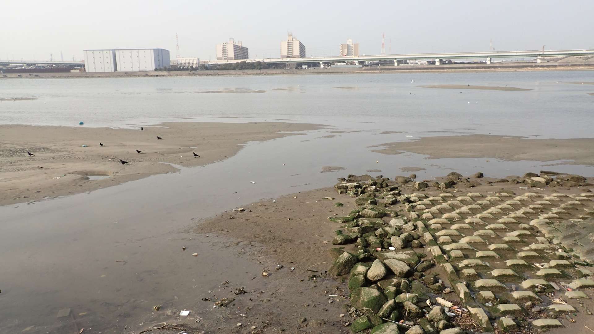 幅180mの(新)大和川に流れ込む。