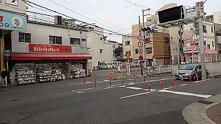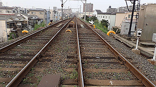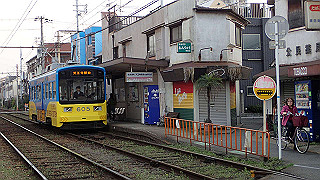 少し東側にそれて阪堺線の踏切を渡ります。
