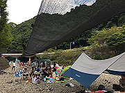 石川の河原ではBBQのグループがいっぱいでした。