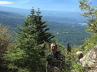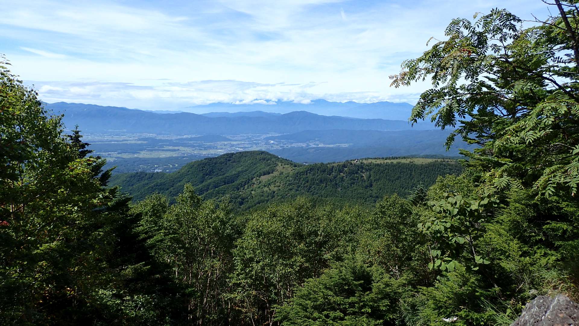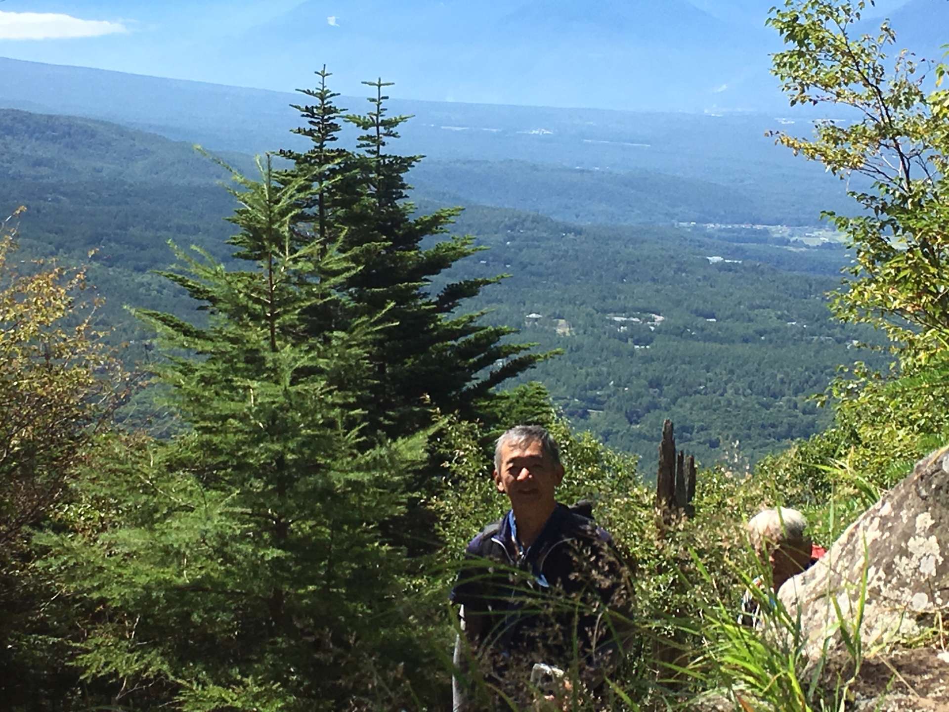 登り始めて1時間半。下界の高原が見えてきました。