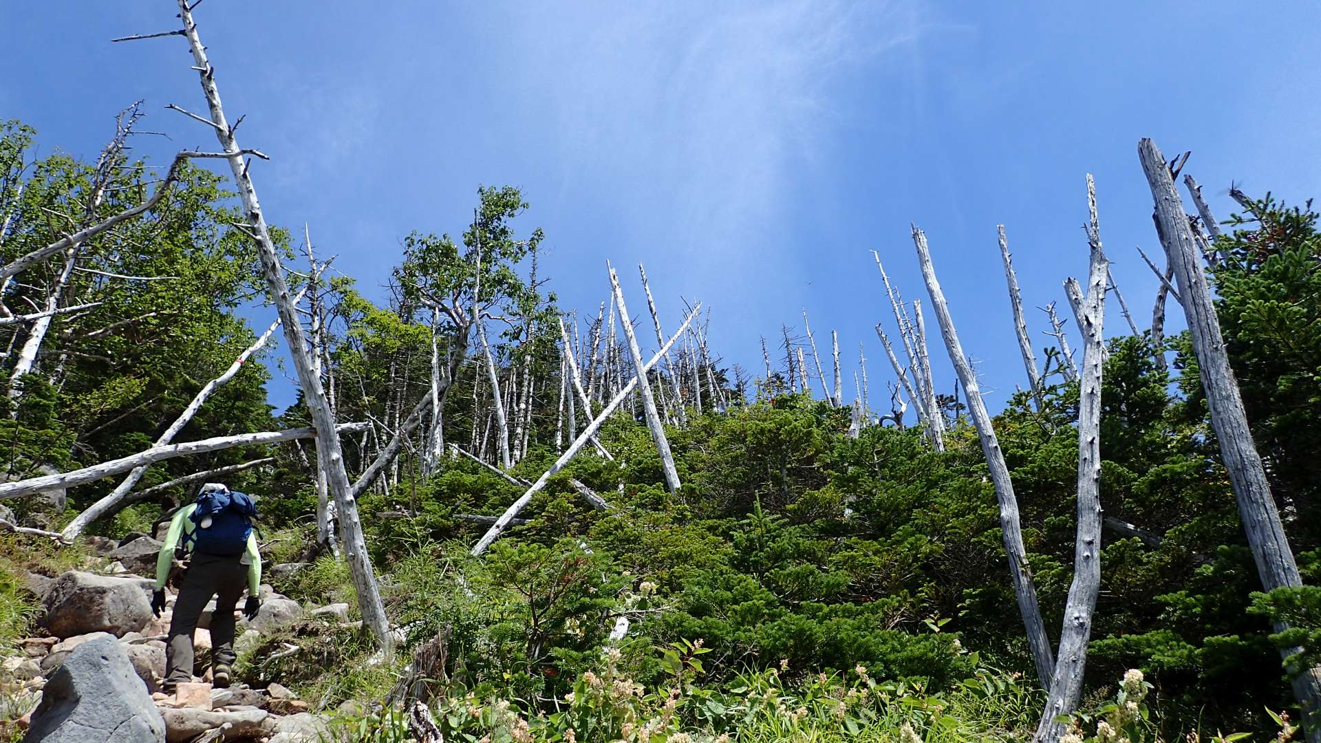スタートして3時間。ようやく縞枯れエリアです。