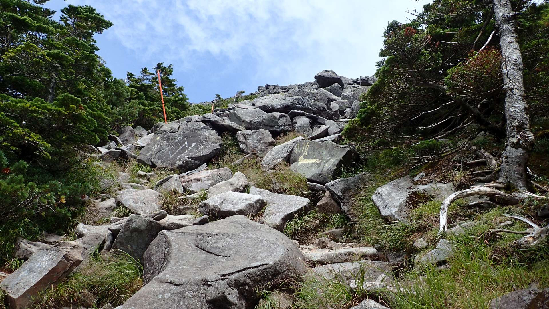 縞枯れエリアを抜けて山頂が少し見えてきました。