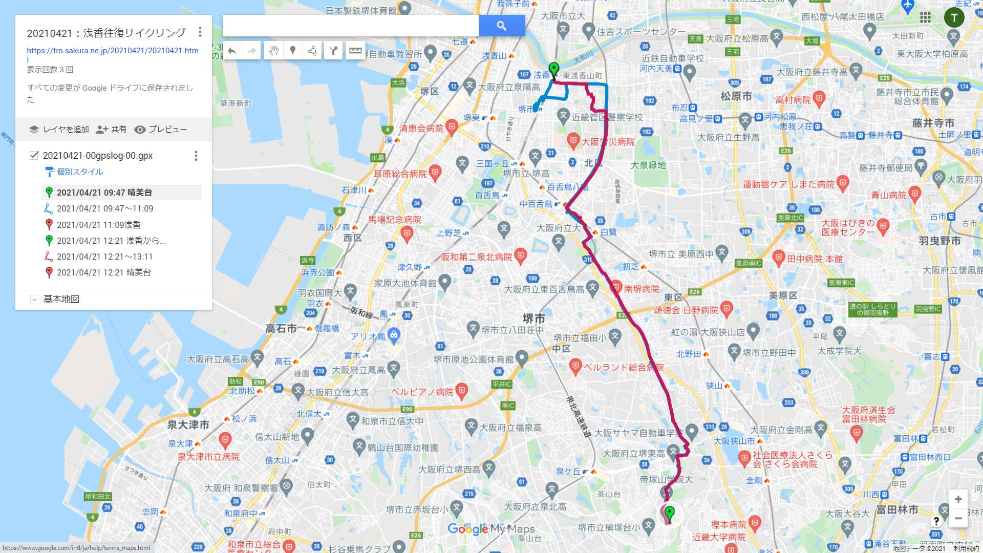 浅香〜奥本〜長尾街道〜中百舌鳥〜白鷺公園〜(西高野街道)〜泉北