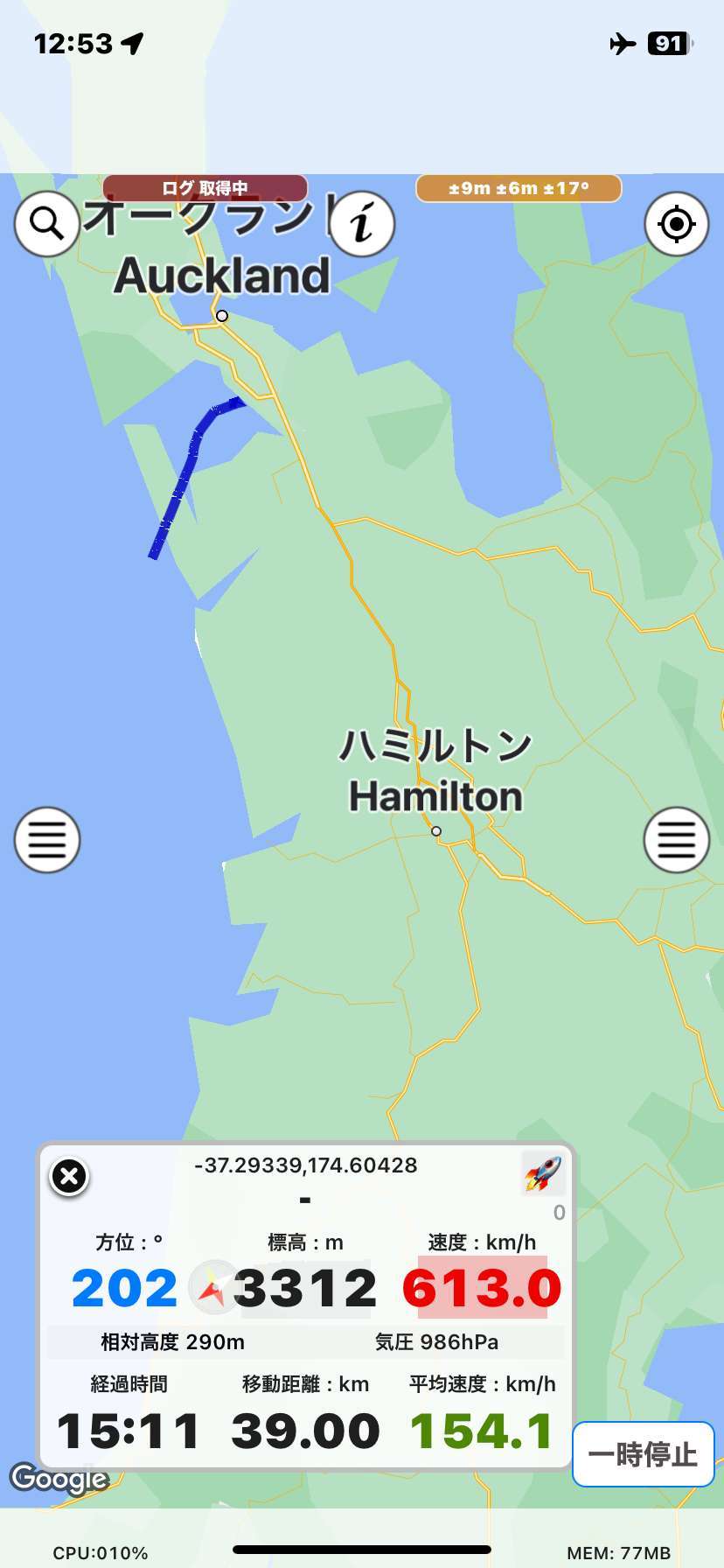 2023/11/23 12:30:37 距離:291.23 km、標高:4 m