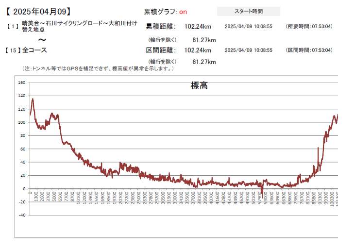 2025/04/09 13:23:43 距離:39.46 km、標高:8 m