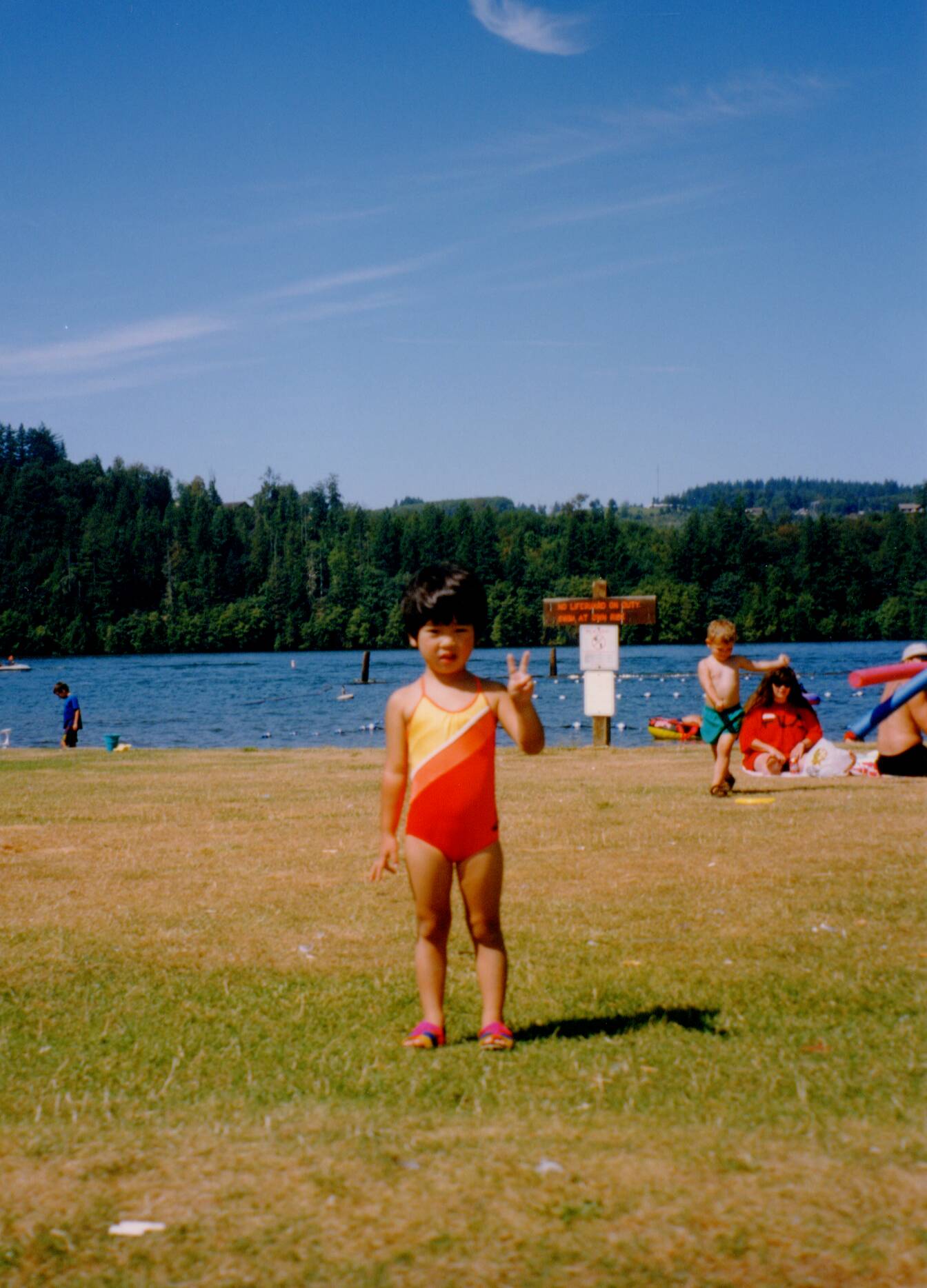 いつもの5号線を北上、セントヘレンへの道を越えて、さらに北上、そしてマウントレーニエの裾野にあるニスカリーロッジを目指す。途中、本当にきれいな湖を発見。思わず昼休憩、子供達は湖で遊ぶ。後で分かったがダム湖であった。2時間程遊んだ後、しばらく車を走らせるとアルダーダムに到着。