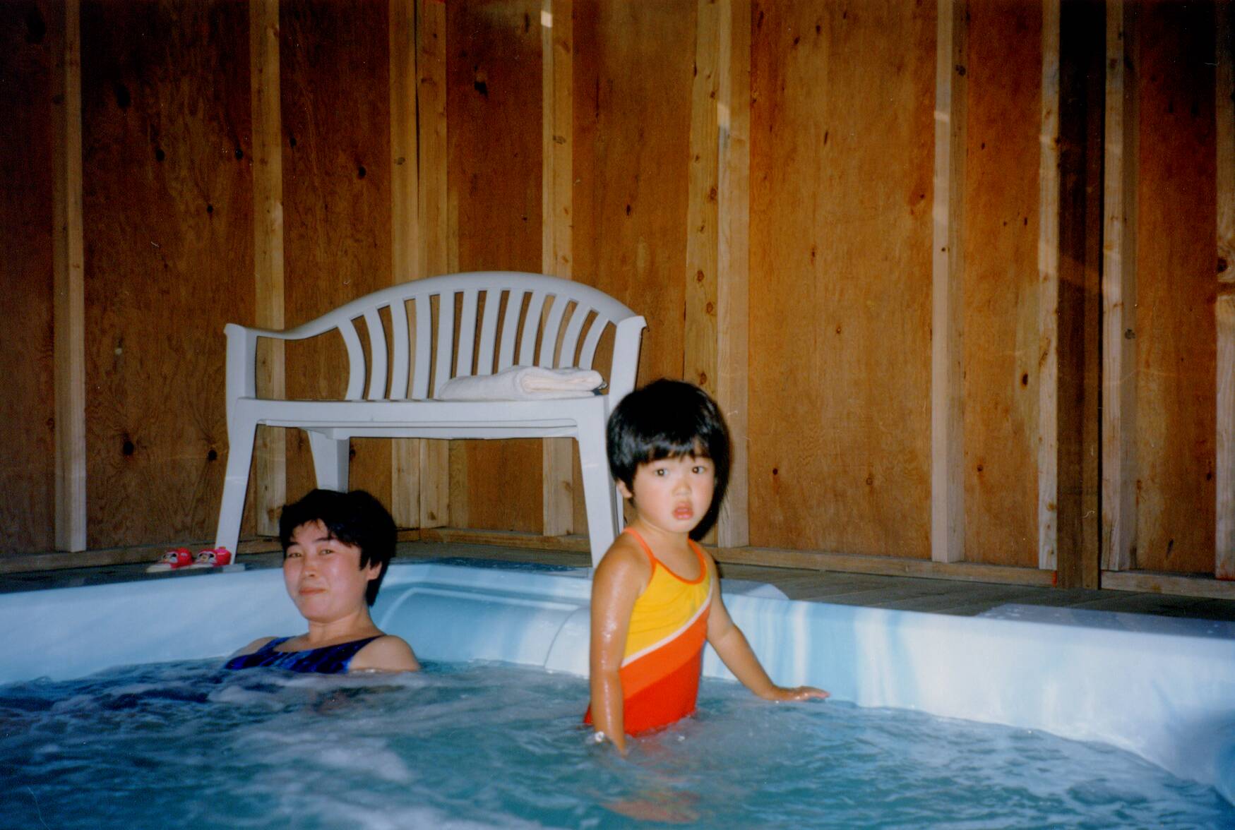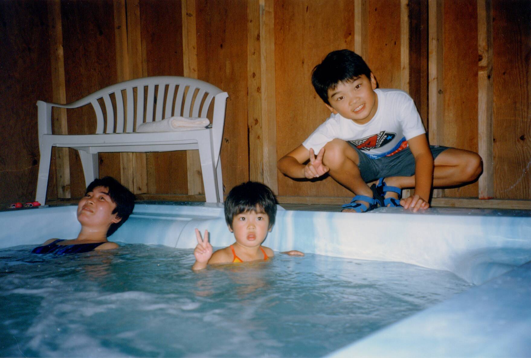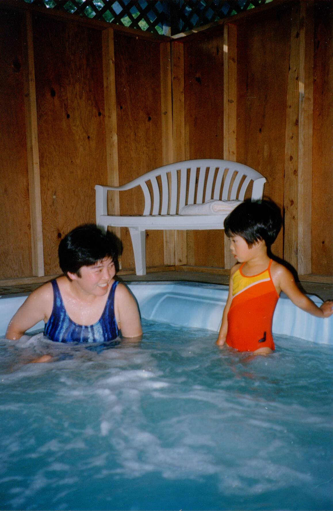 すぐにジャグジーに入って遊ぶ。夕食は、ホテル横の広場の向こうにあるレストランを利用。ここでもアメリカンスタイルの食事に子供達は大満足した。
