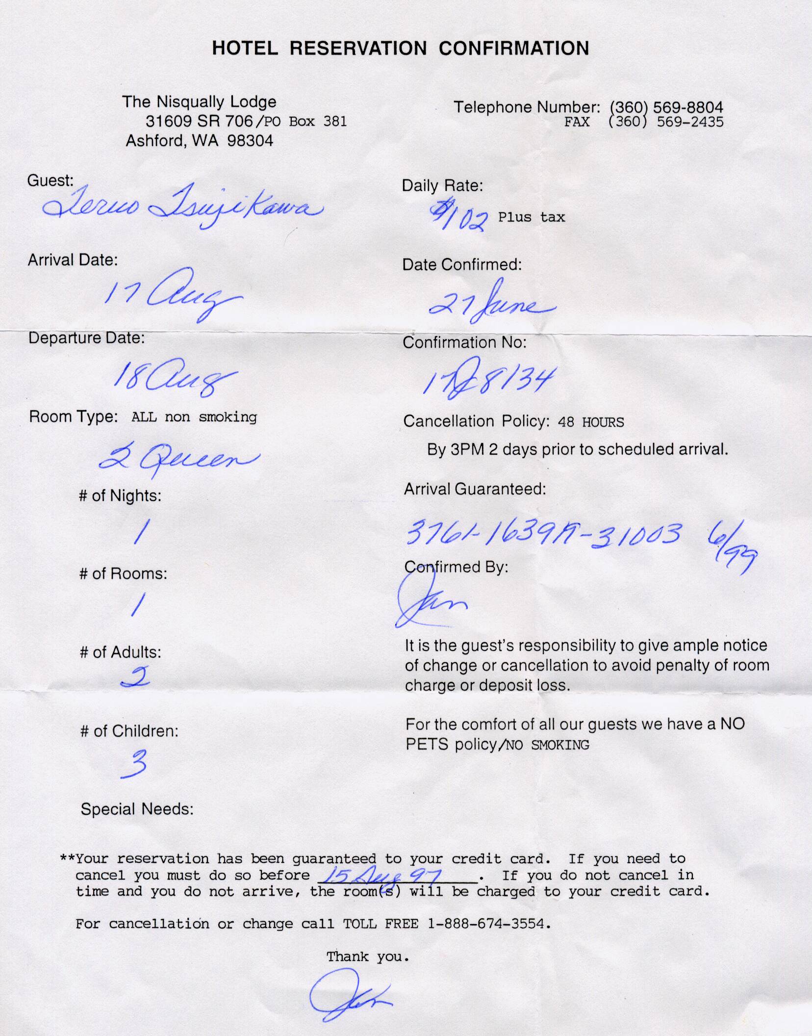*** 97年8月17日 マウント・レーニエへ一泊旅行 ***